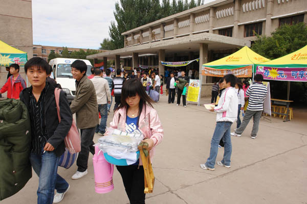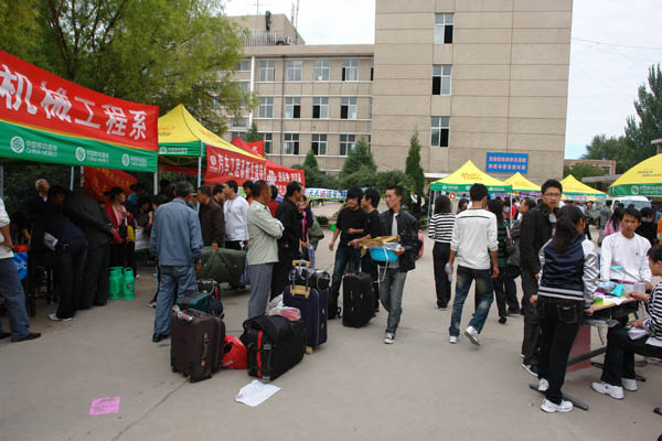 9月10日—11日是beat365官网2009级高职新生报到的日子。整个校园彩旗飘扬,人潮涌动,车流不息,横幅标语在阳光下格外显眼,喜迎来自各地的莘莘学子。