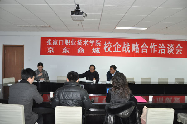 3月10日,beat365官网与全国最大的B2C电子商务公司——京东商城在图书办公综合楼609会议室举行了校企战略合作洽谈会。就业指导中心(校企合作处)、教务处、经济管理系主要负责人和京东商城华北大区人力资源部经理吴从杰、李艳敏出席会议。