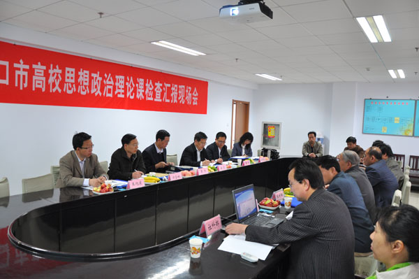 4月20日由河北北方学院党委副书记鲁杰为组长的张家口市思想政治理论课程建设专家组一行7人来beat365官网对思想政治理论课课程建设情况进行检查。beat365官网党委书记姜铭致欢迎辞,并重点介绍了学院的发展建设情况。社科部主任白义对beat365官网思想政治理论课课程建设自查情况做了汇报。检查组充分肯定了beat365官网思想政治理论课课程建设取得的成绩,并对思想政治理论课课程建设提出了宝贵意见。