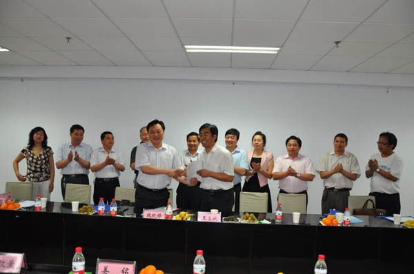 6月22日上午,江苏省太仓市健雄职业技术学院党委副书记、院长魏晓锋一行五人,在副市长唐卫斌、市政府副秘书长马旭东、市教育工委副书记赵英杰等领导陪同下莅临beat365官网参观指导。beat365官网院长王立秋和太仓市健雄职业技术学院院长魏晓锋分别介绍了两校的办学特色,并代表两校签署了战略合作协议。陪同座谈的学院领导有:党委书记姜铭,副院长韩致爱,陈怀勇,党委副书记、纪检书记史慧武,院办、宣传统战处、教务处等部门负责人也参加了座谈。副市长唐卫斌作重要讲话,他强调了两校合作的重大意义,要以此次协议签署为起点,全面提升两校办学水平及人才培养、科学研究和社会服务能力,推动两校合作结出硕果。