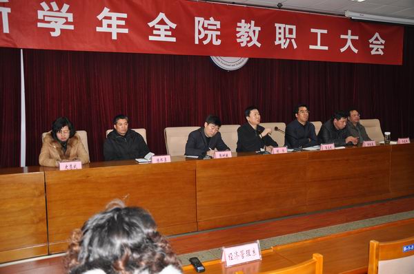 2月26日上午,学院在图书办公综合楼学术报告厅召开新学年教职工大会,安排部署新学年工作。党委书记胡炜、院长王立秋分别讲话,党委副书记张树敏主持大会,副院长韩致爱、陈怀勇、许建平和党委副书记、纪委书记史慧武出席。