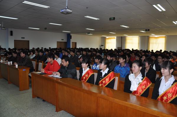 王院长还向同学们介绍了学院今年工作的重点和工作落实的措施。最后,他送给同学们四句话以共勉:“秉承修德励能;光扬勤读力耕;践行知行合一;实现利己达人”。