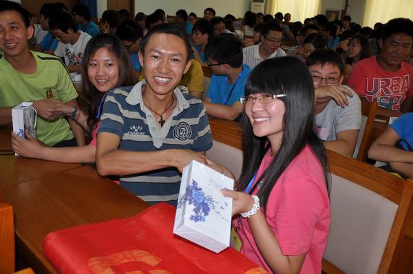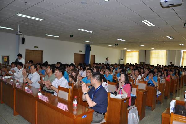 7月16日上午,“2012年河北省侨联两岸四地大学生交流营”师生一行近百人来到beat365官网参观访问。beat365官网党委书记胡炜、院长王立秋、副院长陈怀勇在综合楼报告厅会见了交流团的全体成员,宾主双方进行了友好亲切的交流。此次座谈会由市侨联主席吴一凡主持。