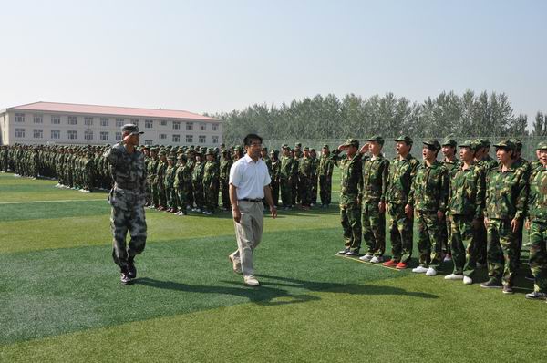 在检阅命令下达之后,院长王立秋在军训教官的陪同下检阅了各个方队,军训学员军容整齐、动作标准、态度认真、口号嘹亮。