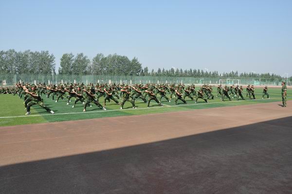 上午9点30分,军训闭营仪式正式开始。在雄壮的国歌声后,首先进行军训成果汇报表演,由军训教官担任的汇报表演总指挥主持了军训成果汇报表演。