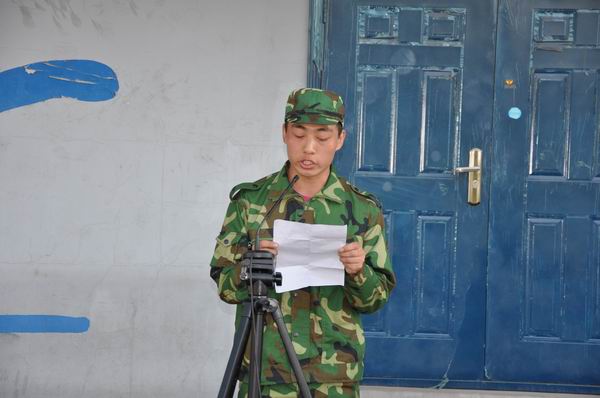 军训学生代表2012级应用外语系李鹏伟代表新生上台讲话,他首先感谢部队军训教官在军训期间的严格要求,使学员们掌握了队列内务等军事技能,磨练了意志品质,端正了态度。他还代表新生向学院领导和老师们表了决心,努力学习,为学院增光添彩,做有用的人才。