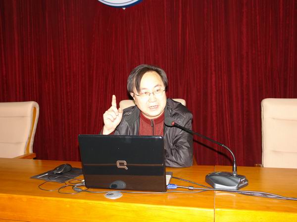 在报告会上,社科部主任白义解读了关于十八大报告的内容和精神,特别强调了九个关注点、十个关键词和八个亮点。