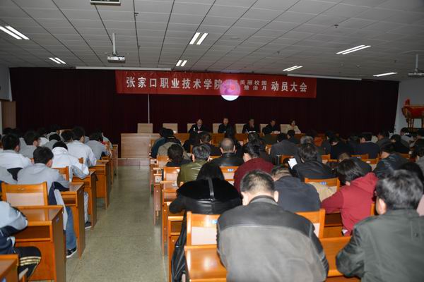 3月29日下午,学院在图书行政综合楼307报告厅召开了“创建美丽校园 环境整治月”动员大会,学院领导胡炜、王立秋、杨瑞辉、陈怀勇、史慧武出席动员会,各部门党政负责人,三级科室负责人,辅导员、学生代表共计300多人参加了动员大会。大会由党委书记胡炜主持。