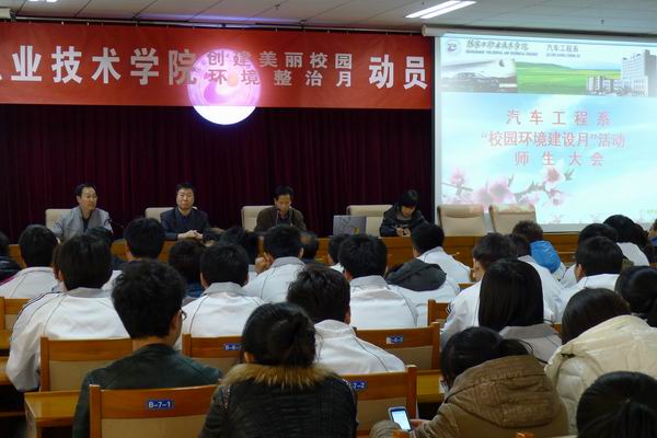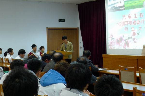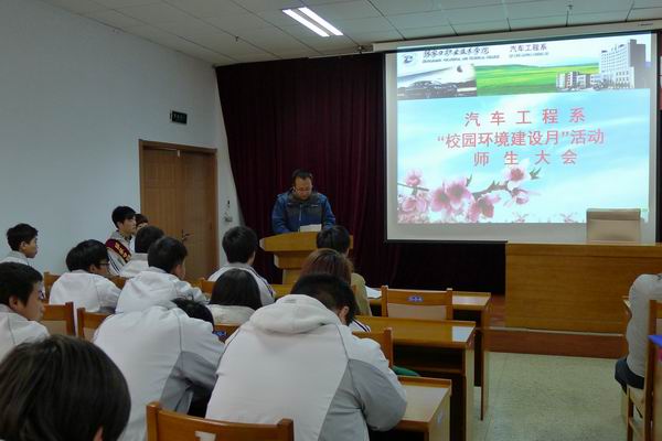 为深入贯彻落实学院“创建美丽校园、校园环境建设月”活动的统一安排,对汽车工程系“校园环境建设月”活动进行部署, 4月10日,汽车工程系召开了“校园环境建设月”活动师生大会。