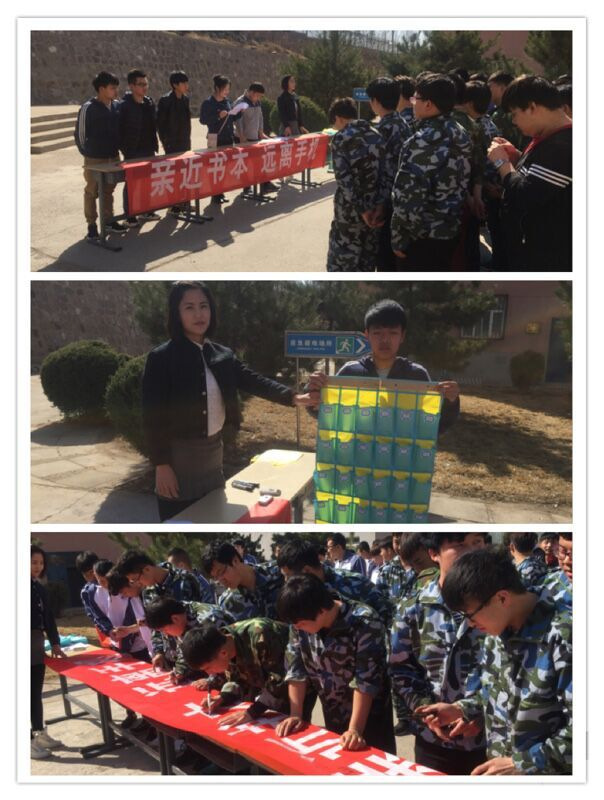 系部全体学生在“亲近书本,远离手机”的条幅上签名,并将今后的每周二下午3:50——4:30定为“每周一读”读书会。