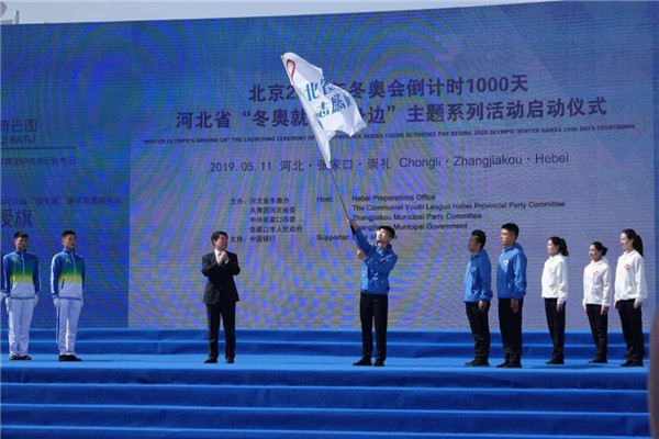 上午,河北省委书记、省人大常委会主任王东峰,团中央书记处书记奇巴图,河北省政府副省长、北京冬奥组委副主席徐建培,张家口市委书记回建,张家口市政府市长、市冬奥办主任、北京冬奥组委张家口运行中心主任武卫东等领导和嘉宾共同推动启动杆,主屏幕与启动装置同时呈现“1000 DAYS TO GO”,标志着北京2022年冬奥会倒计时1000天的到来,在全场欢呼声中,河北省“冬奥就在我身边”主题系列活动正式启动。
