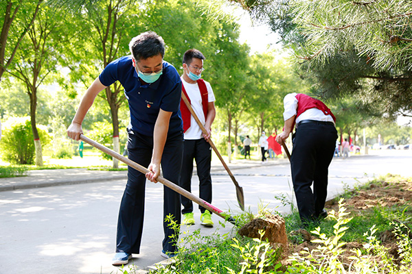 作为学院党委迎“七一”系列主题活动之一,开展义务劳动不仅发挥出各级党组织和党员干部的示范引领作用,增强了学院党员干部的核心凝聚力、协同合作意识和爱校荣校情感,也为营造更加和谐优美的校园环境,推动学院校园文化建设打下坚实基础。