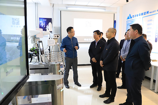 冯印涛一行在崇礼区委副书记、统战部部长高尚君,崇礼区副区长、学院办公室主任冯莉群陪同下,考察参观了崇礼职教中心、雪之谷国家级众创空间,认真听取学校在服务冬奥、冰雪特色专业办学、创新创业、高新技术产品研发等方面的介绍。