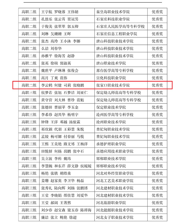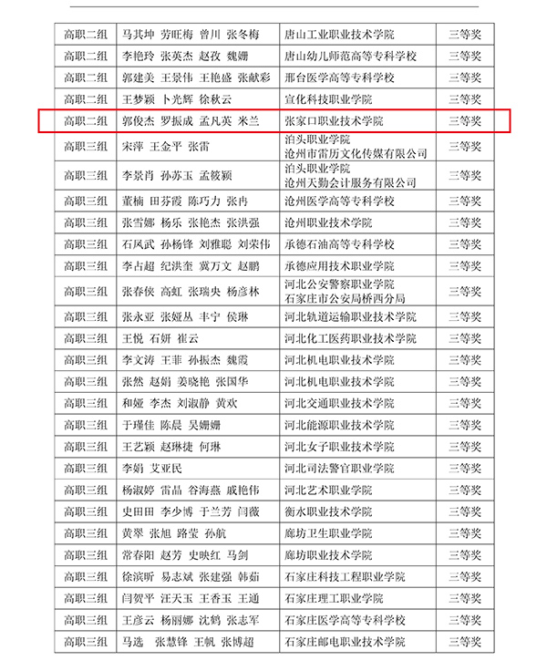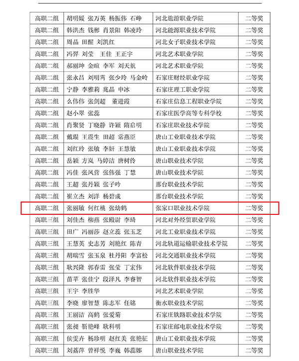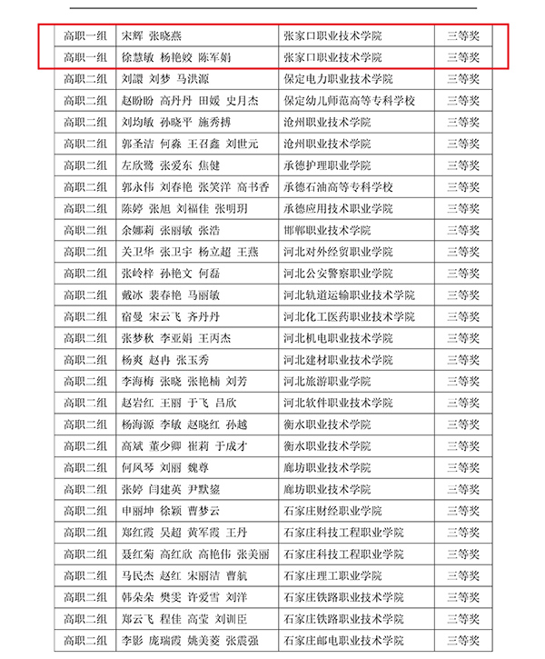 日前,河北省教育厅正式公布2020年河北省职业院校技能大赛教学能力比赛结果。在全省职业院校493支参赛团队中,beat365官网六支参赛队伍表现优异,共夺得二等奖一项、三等奖四项和优秀奖一项。