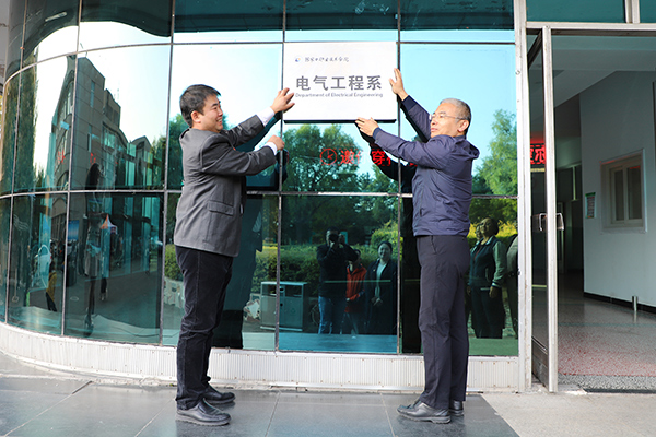 授章、授牌仪式结束后,学院领导王立军、杨汝明、李炜杰、胡伟奇、刘子林分两组赴八个教学系参加系部挂牌仪式,并参观了各系党建活动室、门厅文化、专业教研室,了解了各系专业课程设置、系部文化建设、师资力量建设、专业书籍储备以及新生报到等情况。