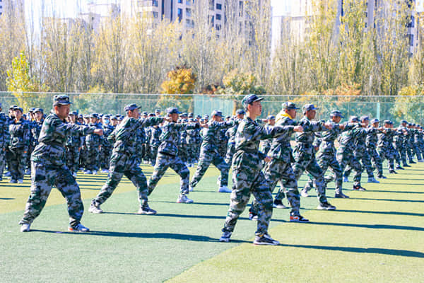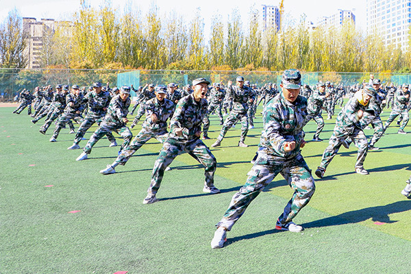 军体拳汇报表演中,学生们目光坚定,气势如虹,挥拳踢腿干净利落,一招一式刚健有力,尽显披荆斩棘的壮志与豪情;队列汇报表演中,学生们军姿标准挺拔、动作整齐划一,展示出高昂的士气、奋发向上的精神风貌和14天来的艰苦训练的丰硕成果,赢得了现场领导和观众的热烈掌声。