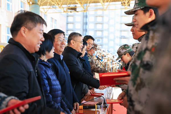 学院领导为优秀教官、军训先进集体和军训标兵颁奖。