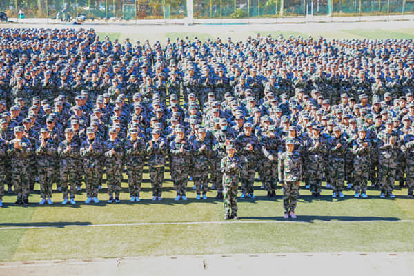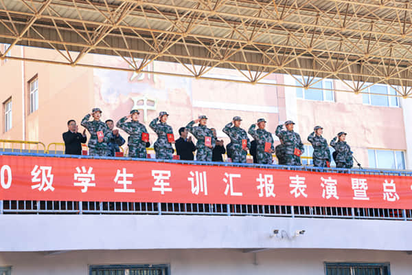 学院各行政处室、系部负责人,军训部队全体教官、部分教师代表及2020级新生参加大会。