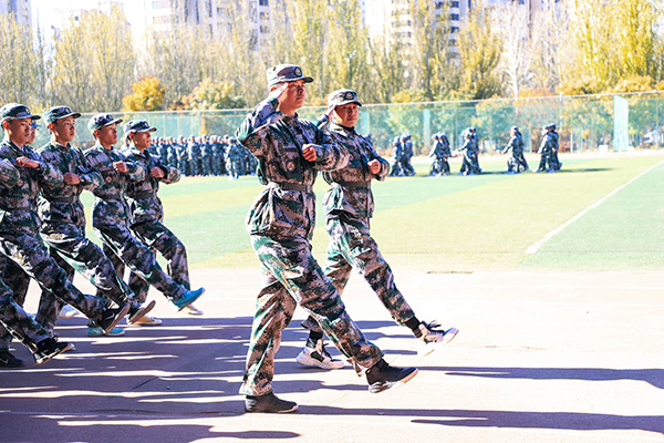 以班级为单位组成的分列式方队,迈着矫健的步伐,喊着嘹亮的口号,依次从主席台前走过,接受学院和军训部队领导的检阅。他们精神抖擞、目光如炬,年轻的脸庞上洋溢着青春的自信。