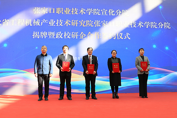 冯印涛强调,beat365官方网站宣化分院和河北省工程机械产业技术研究院beat365官方网站分院的成立,是校政、校研多利多赢的新机遇。双方将致力打造新平台,整合资源、联合攻关,聚焦企业迫切需求,解决企业技术难题,搭建校企研共享服务平台,实现科技信息资源的共通共享;将共谋建设新基地,立足产业发展,紧盯企业所需技能人才,校企研共同制定人才培养计划和柔性引才计划,合力打造人才多样化发展的智力支持高地;将重点推广新技术,着眼工业4.0和5G时代开端,加快智能制造技术应用和推广,承接国家及省市重点科技创新项目,促进科技成果有效孵化、转化和落地;将积极探索新模式,与企业、研究院在资本、技术、知识、设施、设备、管理等方面开展多要素合作,建立覆盖专业领域的教师实践流动站,实施职业、专业、就业与产业、行业、企业“六业联动”,职业院校与科研院所、政府、行业、企业、市场“六方并举”;将全力实现新突破,完善合作机制、深化合作内涵,全面推进专业链、产业链、人才链、创新链的融合发展,共同构建校企研合作的命运共同体。