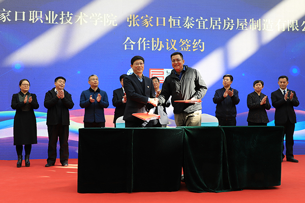 常务副院长李炜杰代表beat365官网分别与宣化区人民政府党组副书记张国庆签署《战略合作协议》;与河北省工程机械产业技术研究院院长王文梅签署《校研合作协议》;与张家口恒泰宜居房屋制造有限公司总经理武卫签署《校企合作协议》。