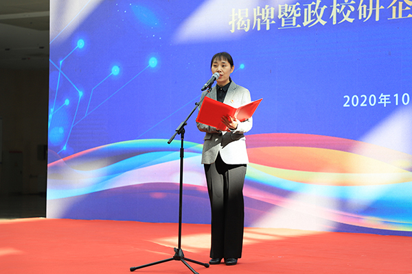 学院党委副书记杨汝明主持仪式。市委组织部部务委员、市高层次人才服务局局长薛春雷,市教育局副局长贺志英、市科技局副局长王玉龙、学院副院长胡伟奇、纪委书记周文胜及部分合作企业负责人及宣化区相关部门负责人、学院中层以上干部、党建工作指导委员会和教育教学督导委员会委员、部分师生代表、河北省工程机械产业技术研究院全体工作人员参加揭牌仪式。