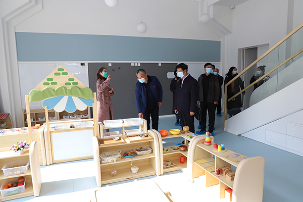 在参观了北京科技职业学院八达岭校区、沙河校区、公立巩华北科幼儿园和婴幼学苑后,冯印涛、王立军与北京北科昊月教育集团董事长、北京科技职业学院理事长、校长、党委书记周孟奎,常务副总裁、北京科技职业学院执行校长尹勇胜进行了座谈。