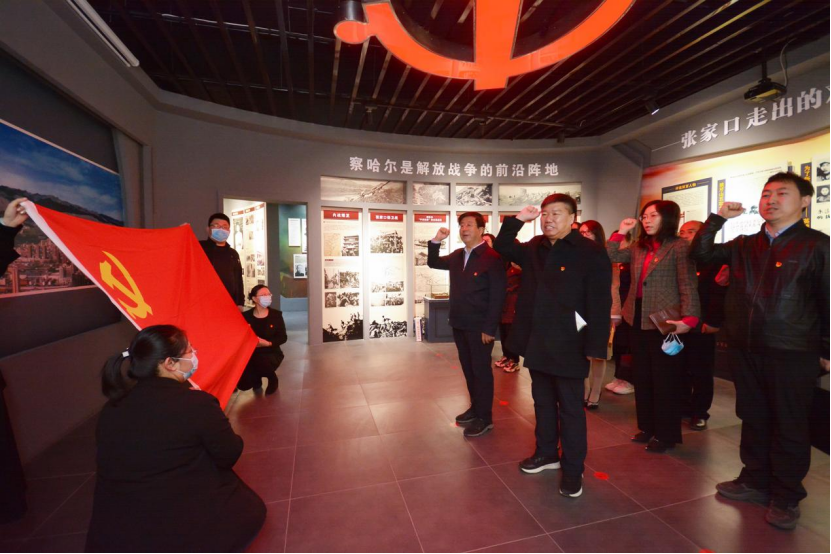 占地300平方米的红色察哈尔革命历史博物馆设计简洁庄重,更加突显了中国共产党领导下的察哈尔大地争取民族独立和解放这段红色历史的厚重。在讲解员的带领下,全体党员分别从察哈尔与张家口的历史渊源、马克思主义传播与早期中国共产党组织的创建、察哈尔民众抗日同盟军的崛起与失败、察哈尔是全面抗日的重要战场和解放战争的前沿阵地、张家口走出的双百人物、察哈尔重镇张家口是老工业基地、党和国家领导人在张家口等多个方面近距离了解察哈尔时期爱国尚武、开放包容、重商敬业、崇文好艺的人文历史特点。