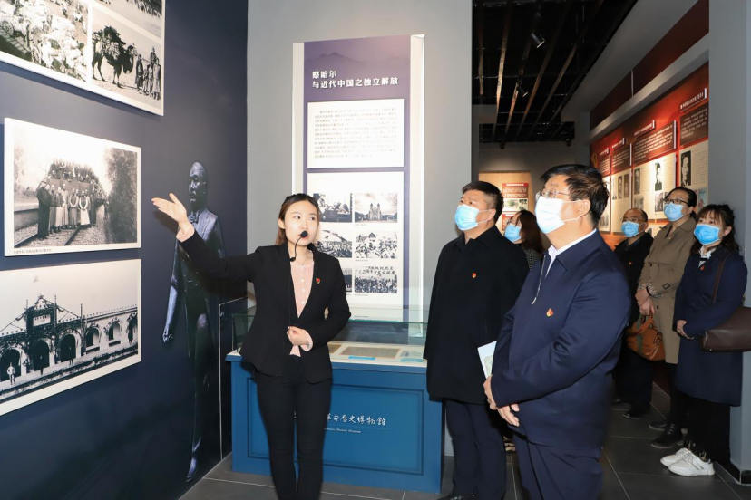 在党史学习教育中汲取奋勇前进的力量,在沧桑历史回顾中增强开拓创新的勇气。3月29日一上班,学院党委书记冯印涛、副书记杨汝明与各行政处室、教学系部的党建工作负责人一起步行至经开区马路东街道东宁街社区红色察哈尔革命历史博物馆进行参观,回顾党的历史,感受红色文化,接受党性教育。