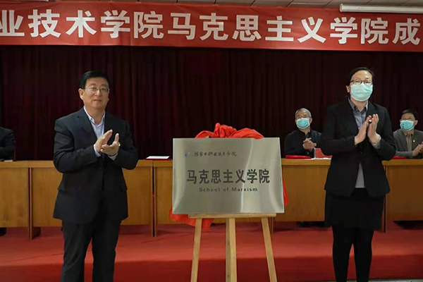 党委书记冯印涛与思政教学部负责人共同为马克思主义学院揭牌。
