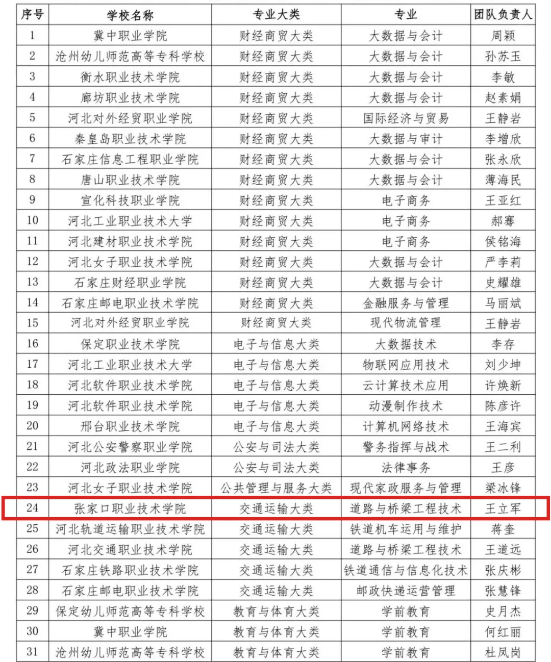河北省第二批职业教育专业教师教学创新团队立项建设单位名单(高职)