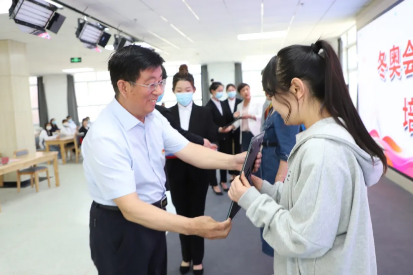6月4日,学院师生活动中心揭牌仪式暨2022年北京冬奥会赛会志愿者储备力量培训工作启动仪式在知行楼二楼举行,学院党委书记冯印涛、共青团张家口市委书记张璐出席仪式。
