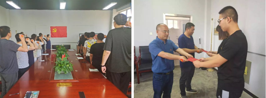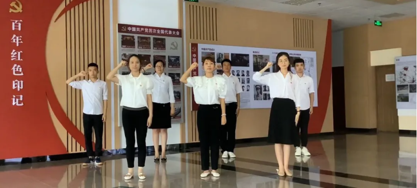 全体党员面对鲜红的党旗庄严肃立,郑重举起右拳,一起重温入党誓词,更加坚定了全体党员跟党走的信心和决心。