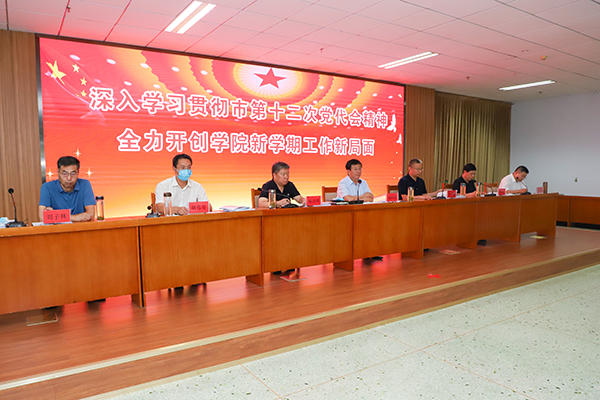 8月19日,学院在知行楼三楼报告厅召开会议,深入学习贯彻市第十二次党代会精神,对2021年下半年学院各项工作进行安排部署。党委书记冯印涛强调,要把传达学习贯彻党代会精神与扎实做好当前各项工作紧密结合起来,在深谋细研上下功夫,在创新突破上下功夫,在实化举措上下功夫,在狠抓落实上下功夫,以更好的精神面貌、更实的工作作风、更高的办事效率,抓紧抓实抓好各项工作,为“十四五”高质量发展奠定坚实基础,为创建高水平高职院校而努力奋斗,为实现市第十二次党代会确定的目标任务贡献更大力量。