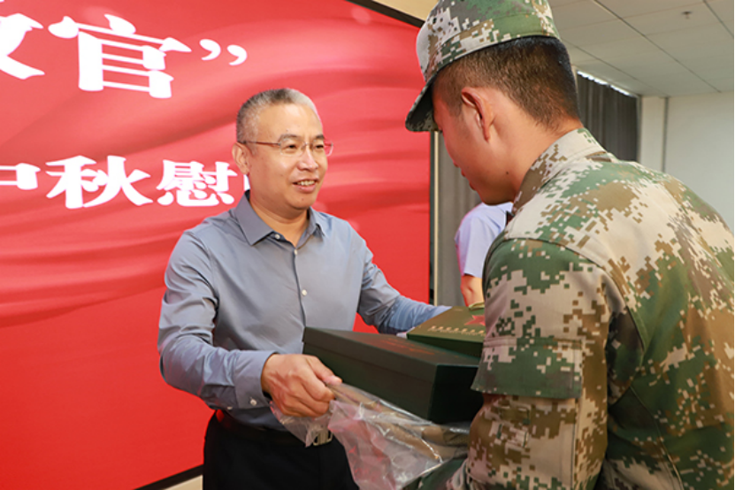 学院领导向全体教官送上中秋佳节祝福并赠送慰问品。