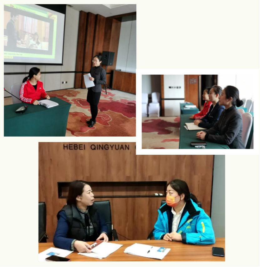 根据培训方案和培训任务安排,beat365官网财经旅游学院选派孙俊霞、李婵、王丽虹三位教师负责此次英语培训教学工作。培训对象包括崇礼云瑧金陵翠云山酒店、崇礼梦特芳丹酒店、华邑酒店和张家口国际大酒店管理及服务人员。三位教师根据酒店管理服务人员的特点,认真备课,针对性选择教学方法组织教学,顺利完成了培训任务,有效提升了冬奥住宿酒店管理服务人员英语口语水平及运用英语语言进行工作的能力。