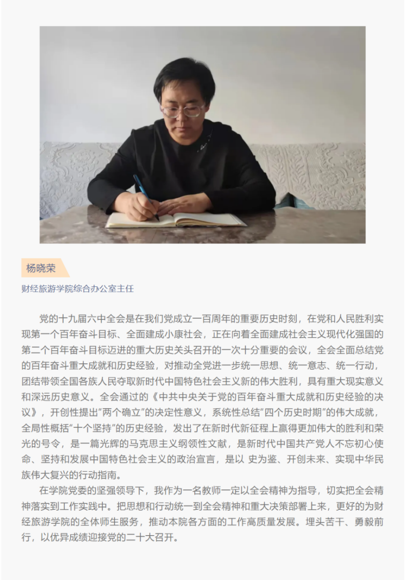 张职院热议 | 财经旅游学院教师热议党的十九届六中全会精神