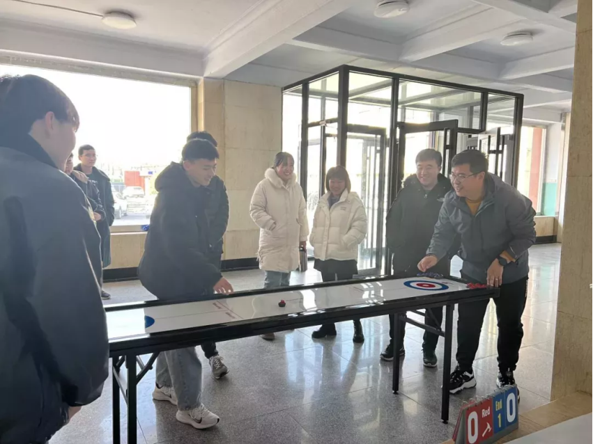 为丰富师生课余生活,营造校园冬奥氛围,12月15日,土木工程系在求知楼举行了一场精彩纷呈的旱地冰壶竞赛。