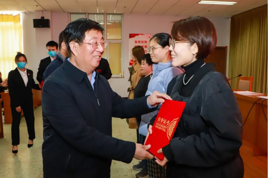 会上,学院领导为获得2021年度中层领导班子考核优秀的土木工程系、财经旅游学院、教务处、后勤管理处、学院办公室、学生工作处、团委颁发奖状;为2021年度考核结果优秀的郭增等5名中层正职领导干部和李金娜等7名中层副职领导干部颁发荣誉证书;为信息工程与艺术设计学院等5个单项工作业绩突出系部和左岩岩、陈英英等12名系部、处室工作业绩突出人员颁发荣誉证书。