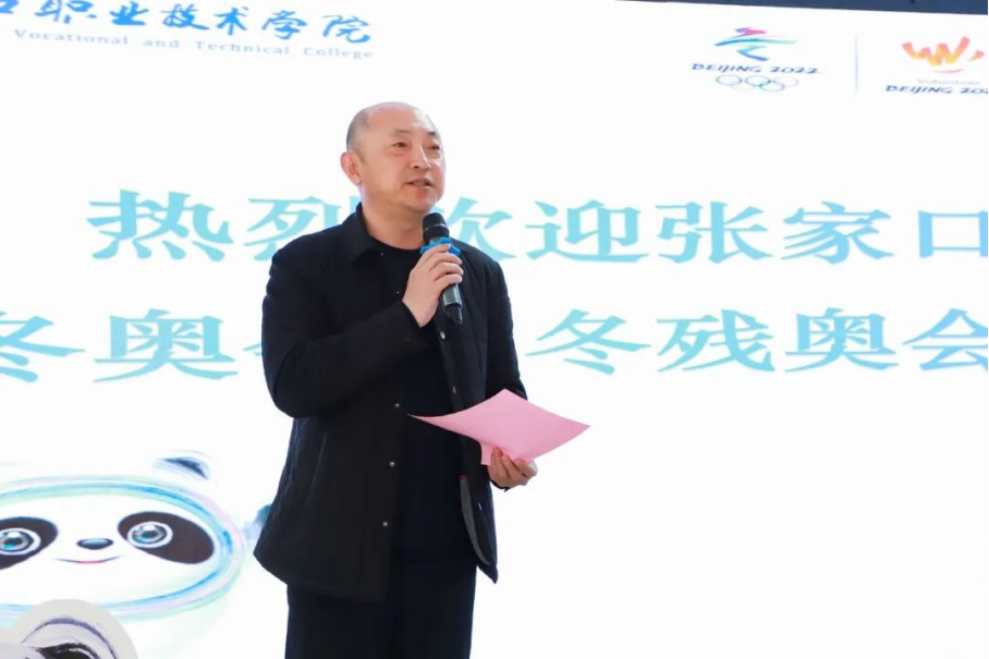 副院长张东兵在致辞中向圆满完成各项志愿服务任务的志愿者们表示了亲切慰问和衷心感谢。他表示,师生志愿者们不畏严寒,勇担责任,拼搏进取,时刻秉承“修德砺能 知行合一”的校训,以最强的状态、最佳的心态、最好的姿态,在各自工作领域助力北京冬奥会和冬残奥会成功举办,为举办一届“简约、安全、精彩”的奥运盛会贡献了张职力量和青春力量。希望大家再接再厉,将“厚积薄发”的沉淀精神、“不惧挑战”的拼搏精神和“美美与共”的和谐精神贯彻到工作和生活当中,不断创造新的高度,挑战新的可能。同时进一步总结志愿服务经验,积极传播正能量,积极分享服务冬奥会和冬残奥会期间的经历、收获和体会,持续讲好冬奥故事,上好冬奥这堂“大思政课”。