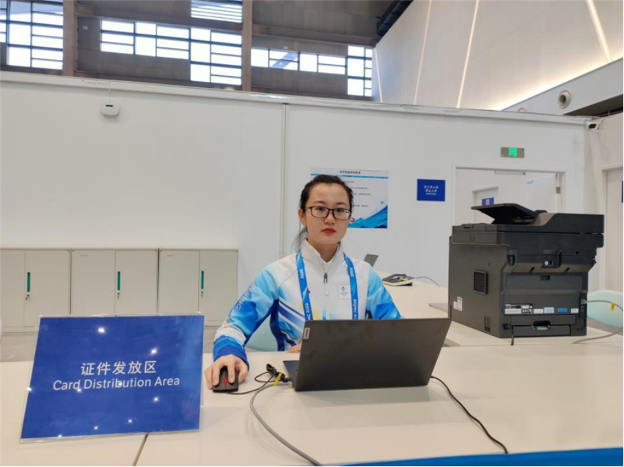 制证工作分为打印、裁剪、贴标、塑封、电子证件写入、核验、质检等步骤,张婧宇始终仔细认真审核每一道证件,确保了每位涉奥人员都能准确无误地进入相应区域。期间,她还转至客服岗位,负责对客户进行身份核验、收取材料、对接仓库等工作,圆满完成了客服岗位工作任务,对外展示了注册业务领域的良好形象。