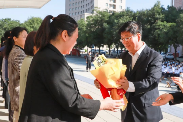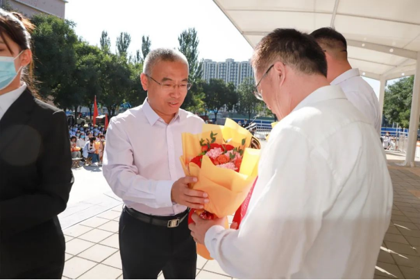 冯印涛、王立军先后为方向宇、孙俊霞等22名2021-2022学年优秀教师和杨瑞霞、孙波等20名2021-2022学年优秀教育工作者颁发荣誉证书并献花。