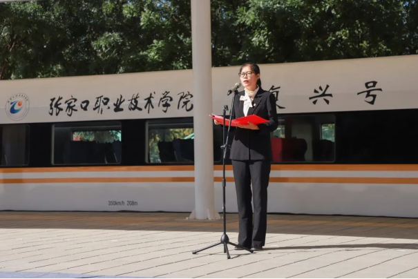 国家级技能大赛获奖队指导教师左岩岩作为教师代表作表态发言。