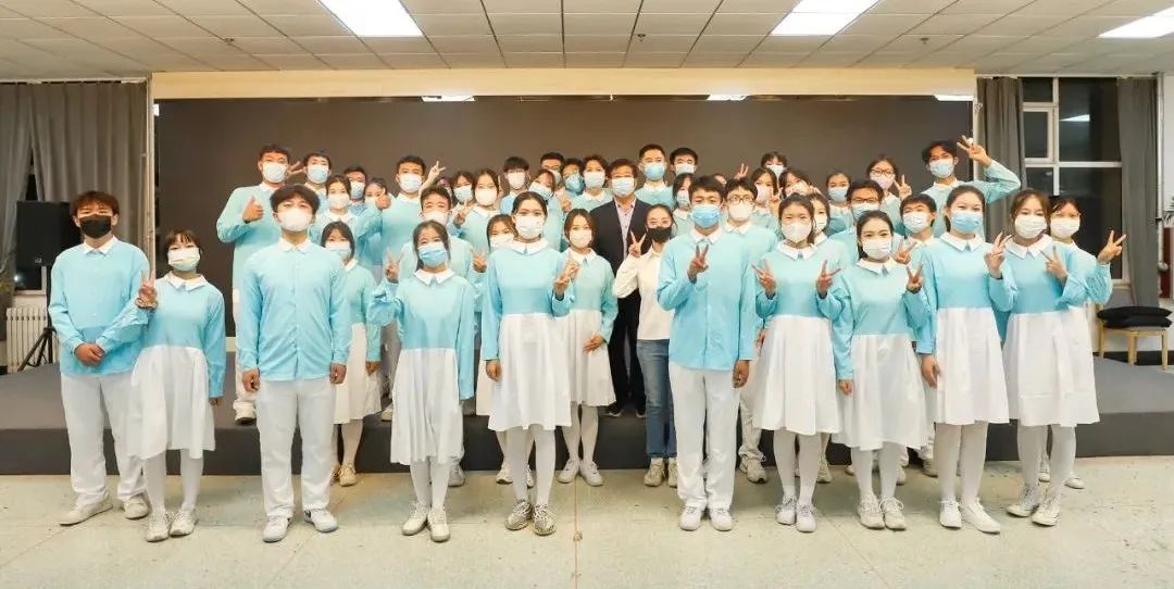 最后,冯印涛为艺术团学生发放了防疫用品,并与艺术团学生集体合影留念。