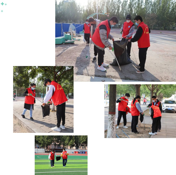 在了解到师生们开展的垃圾捡拾志愿活动后,党委书记冯印涛主动参与到校园生活垃圾清理工作中,身着红色志愿者马甲,与学生们分组开始进行垃圾捡拾清理。大家协作配合,认真负责地对责任区域进行清理,对捡拾的各类垃圾清理打包,并及时将打包完的生活垃圾投入到垃圾收集箱内。