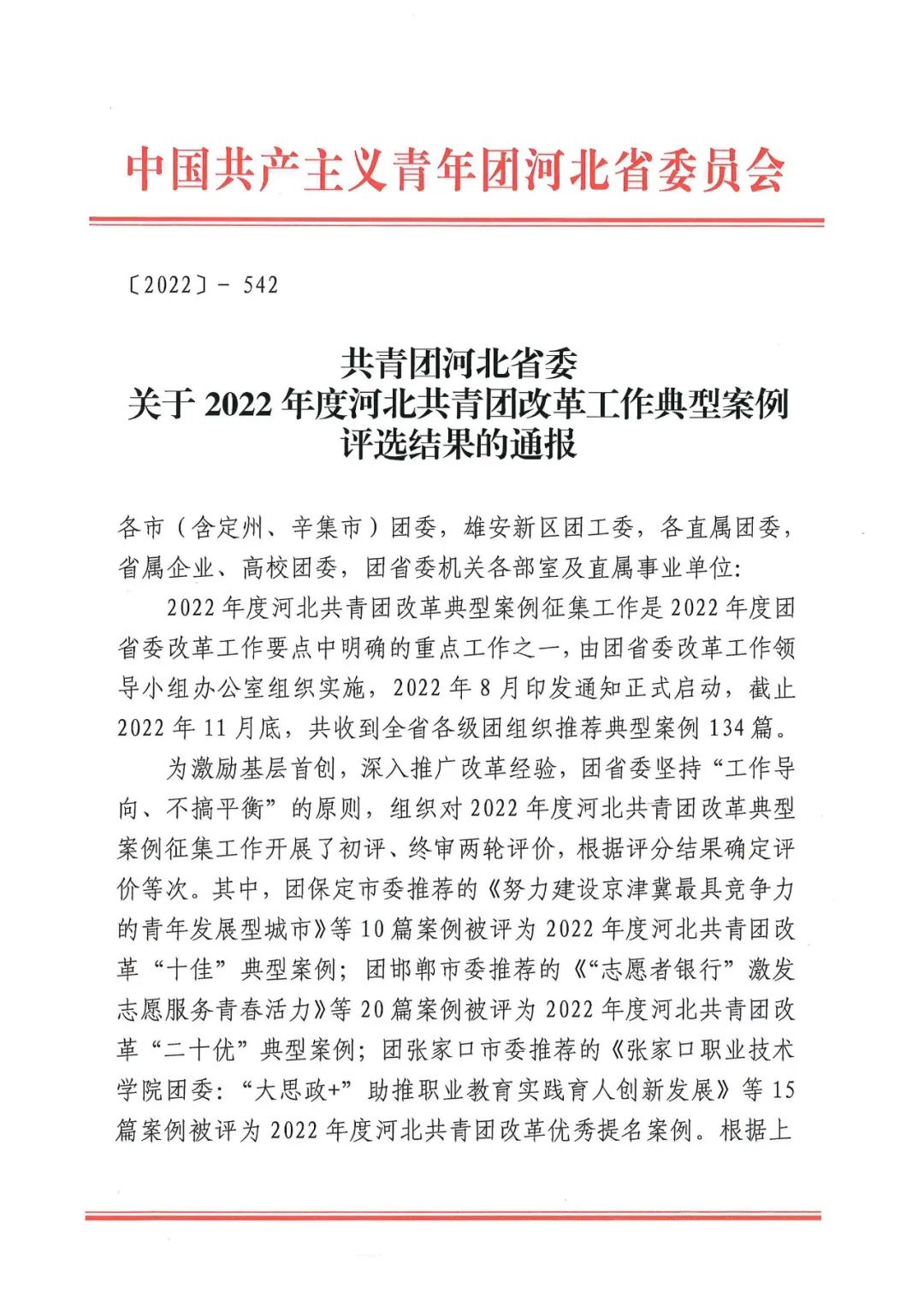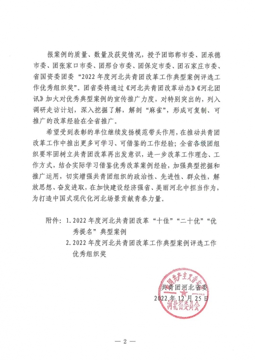 喜报 | beat365官网2篇案例获评2022年度河北共青团改革优秀提名案例