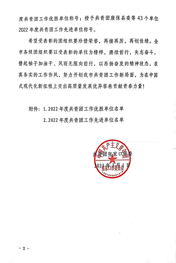 喜报 | beat365官网荣获2022年度张家口市共青团工作优胜单位