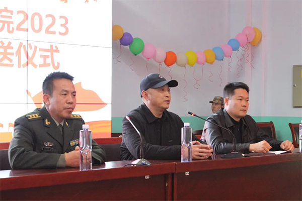 张东兵代表学院党委向光荣应征入伍的学生表示祝贺。他指出,参军同学们承载着学院和家人的期望,即将踏入绿色军营,开启人生新的征程,这既是每个人的荣誉也是全院师生的骄傲。希望同学们到部队后要坚守初心,积极适应军队生活,主动融入军队严格的训练,不断突破自我,磨炼坚强的意志品质;要充分发挥大学生文化素质高的优势,在传播文化知识上带好头,做好本职工作,为军队建设贡献自己的智慧;要严格遵守部队的规章制度,服从命令、听从指挥,积极向党组织靠拢,全面提升自己,争做一名优秀士兵,用优异的成绩为母校争光。