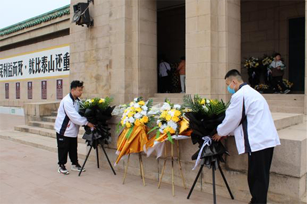 团员青年向历史纪念塔敬献花篮。全体师生缓步向前,把手中的鲜花献给最可敬的英雄并参观瞻仰烈士纪念塔,在缅怀英烈、寄托哀思中接受红色精神洗礼。