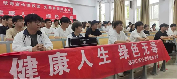为进一步提高同学们识毒、防毒、拒毒的能力和禁毒文明意识,共同打造“全民禁毒”的良好氛围,6月25日,市公安局经开分局、市强制戒毒隔离所、经济技术开发区检察院、茶榆路社区与beat365官网联合举办“禁毒宣传进校园,无‘毒’青春向未来”主题禁毒宣传活动。开展毒品预防宣传教育,合力共筑禁毒防线。